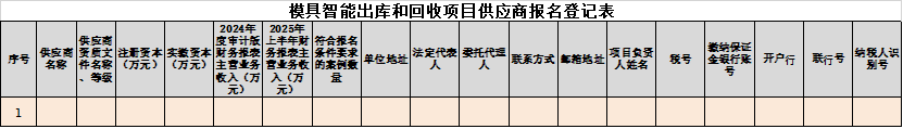 十一、模具智能出库和回收项目供应商报名登记表格式如下: